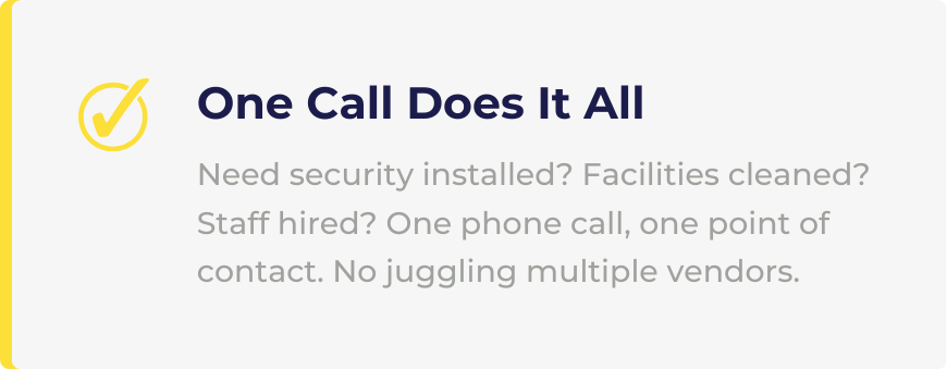 Plus many more... if your business needs security, facilities, or staffing help, we can work with you.